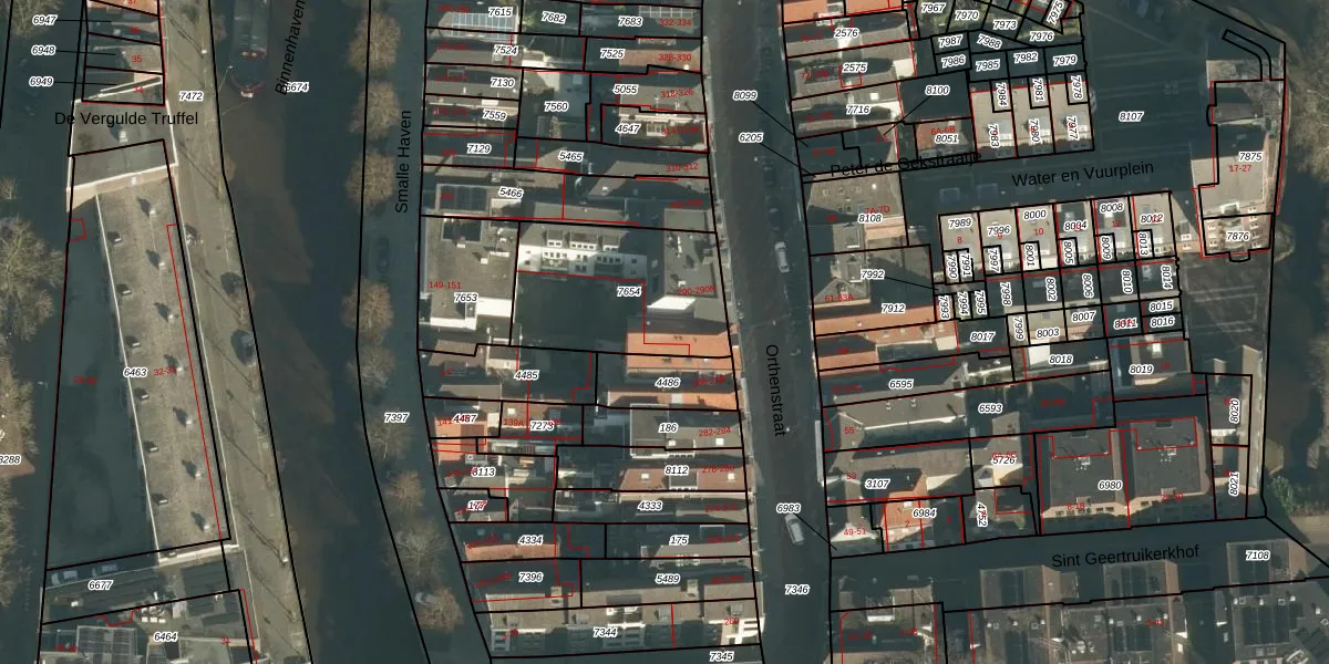 Het perceel waarop Orthenstraat 290-F staat heeft een oppervlakte van 596 m². Dit is een groot perceel. De perceeloppervlakte wordt geregistreerd door het Kadaster. Gedetailleerde informatie over de maten van dit perceel kunt u vinden in het rapport Kadastrale kaart met maatvoering van Orthenstraat 290-F.