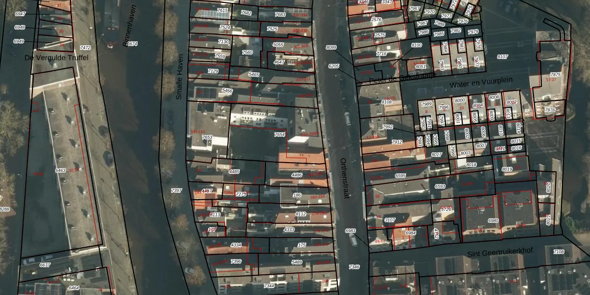 Het adres is gelegen op perceel 7654 in de sectie G en de kadastrale gemeente 's-Hertogenbosch. De kadastrale aanduiding is aldus HTG00-G-7654. Het perceel is kleiner dan gemiddeld in 's-Hertogenbosch. Het perceel is 596 m² groot, terwijl het gemiddelde ligt op 1695,24 m². Het kleinste perceel in de kadastrale gemeente is 0 m² groot. De grootste perceeloppervlakte is 55,1 ha. Op het perceel liggen in totaal 12 adressen. De huidige grenzen van het perceel zijn digitaal in de Basisregistratie Kadaster (BRK) geregistreerd op 19-07-2005.