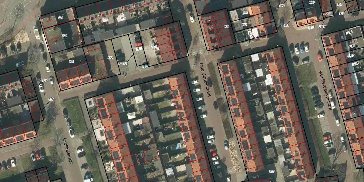 Het perceel waarop Otto Copesstraat 25 staat heeft een oppervlakte van 6050 m². Dit is een zeer groot perceel. De perceeloppervlakte wordt geregistreerd door het Kadaster. Gedetailleerde informatie over de maten van dit perceel kunt u vinden in het rapport Kadastrale kaart met maatvoering van Otto Copesstraat 25.
