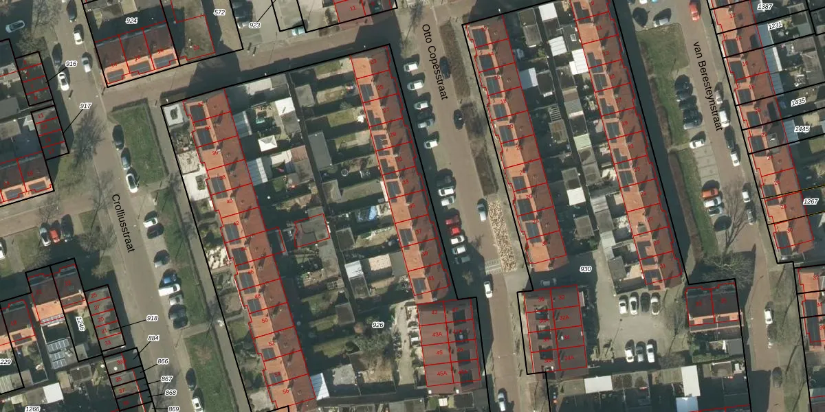 Het perceel waarop Otto Copesstraat 35 staat heeft een oppervlakte van 6050 m². Dit is een zeer groot perceel. De perceeloppervlakte wordt geregistreerd door het Kadaster. Gedetailleerde informatie over de maten van dit perceel kunt u vinden in het rapport Kadastrale kaart met maatvoering van Otto Copesstraat 35.