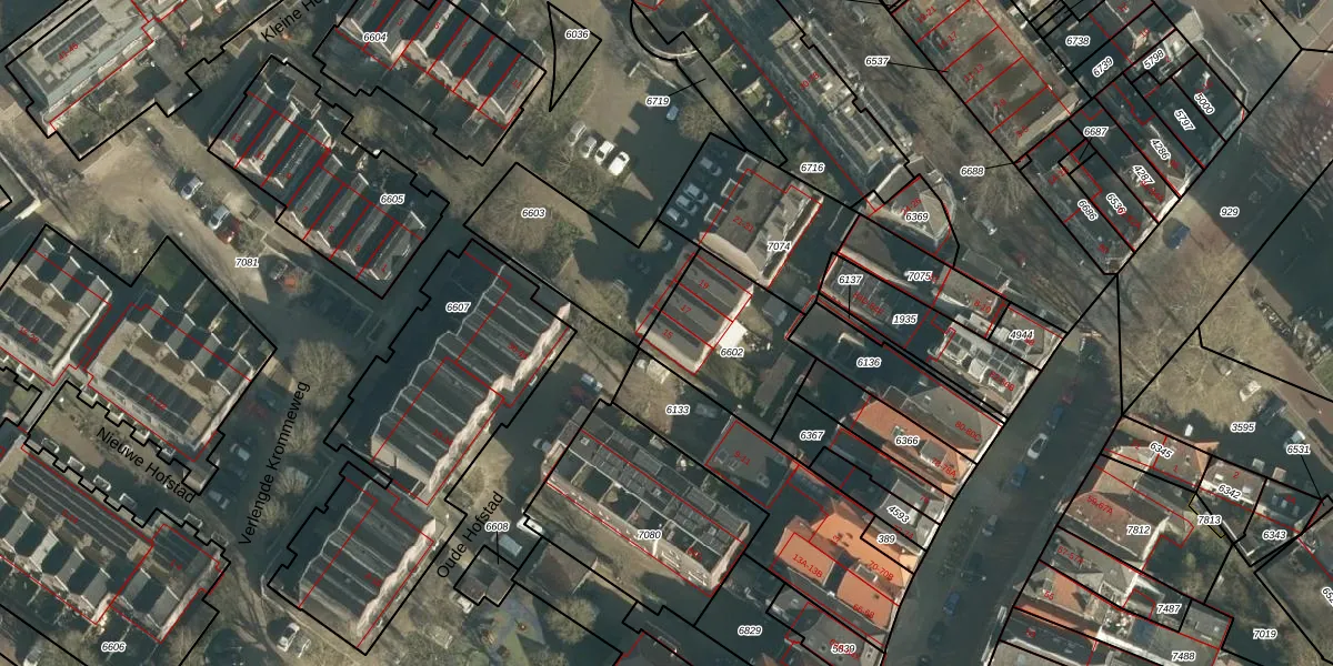 Het perceel waarop Oude Hofstad 15 staat heeft een oppervlakte van 416 m². Dit is een groot perceel. De perceeloppervlakte wordt geregistreerd door het Kadaster. Gedetailleerde informatie over de maten van dit perceel kunt u vinden in het rapport Kadastrale kaart met maatvoering van Oude Hofstad 15.