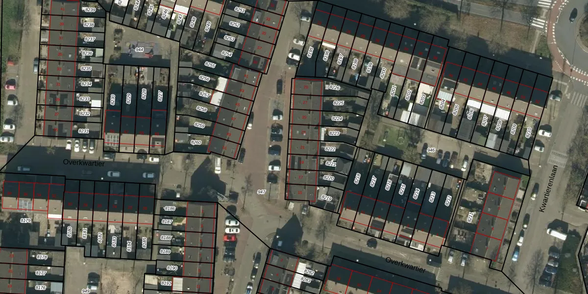 Het perceel waarop Overkwartier 21 staat heeft een oppervlakte van 118 m². Dit is een middelgroot perceel. De perceeloppervlakte wordt geregistreerd door het Kadaster. Gedetailleerde informatie over de maten van dit perceel kunt u vinden in het rapport Kadastrale kaart met maatvoering van Overkwartier 21.