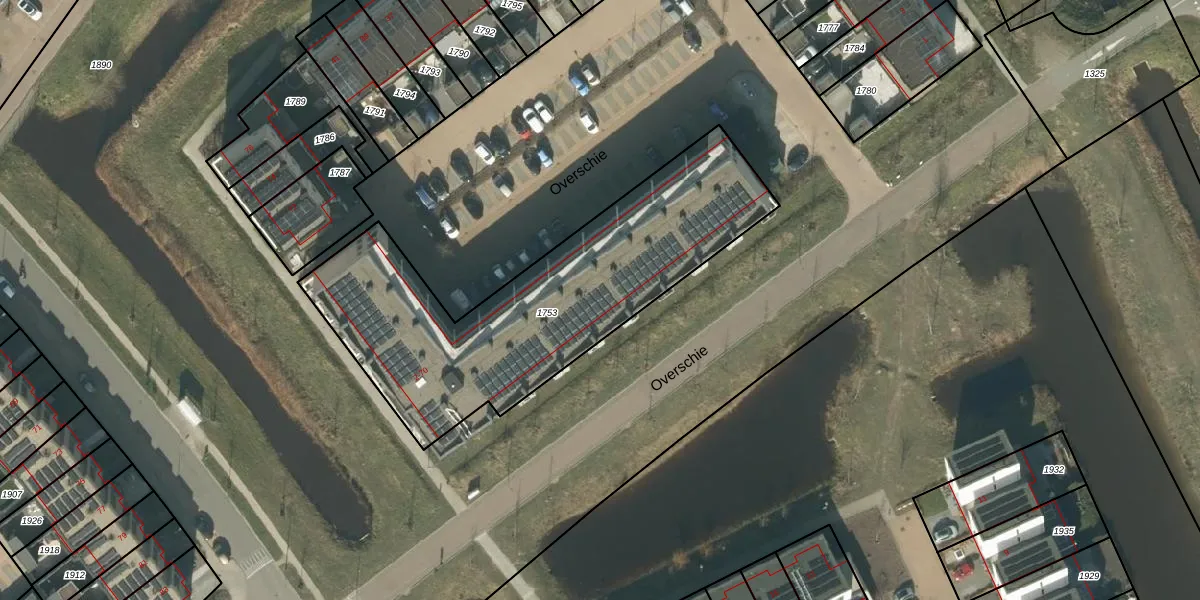Het perceel waarop Overschie 12 staat heeft een oppervlakte van 1530 m². Dit is een zeer groot perceel. De perceeloppervlakte wordt geregistreerd door het Kadaster. Gedetailleerde informatie over de maten van dit perceel kunt u vinden in het rapport Kadastrale kaart met maatvoering van Overschie 12.