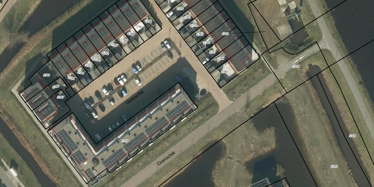 Het perceel waarop Overschie 24 staat heeft een oppervlakte van 1530 m². Dit is een zeer groot perceel. De perceeloppervlakte wordt geregistreerd door het Kadaster. Gedetailleerde informatie over de maten van dit perceel kunt u vinden in het rapport Kadastrale kaart met maatvoering van Overschie 24.