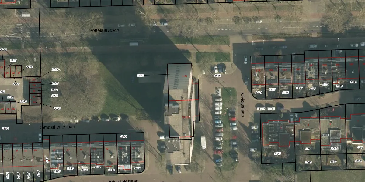 Het perceel waarop Ovidiuslaan 21 staat heeft een oppervlakte van 622 m². Dit is een groot perceel. De perceeloppervlakte wordt geregistreerd door het Kadaster. Gedetailleerde informatie over de maten van dit perceel kunt u vinden in het rapport Kadastrale kaart met maatvoering van Ovidiuslaan 21.
