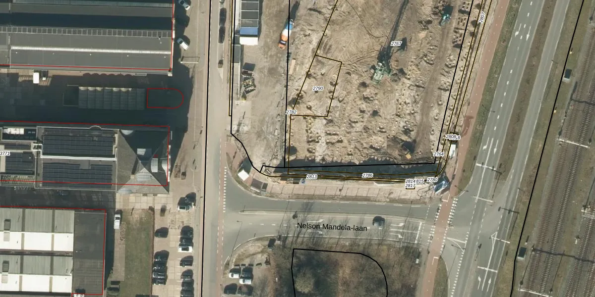 Het perceel waarop Palet 102 staat heeft een oppervlakte van 3690 m². Dit is een zeer groot perceel. De perceeloppervlakte wordt geregistreerd door het Kadaster. Gedetailleerde informatie over de maten van dit perceel kunt u vinden in het rapport Kadastrale kaart met maatvoering van Palet 102.