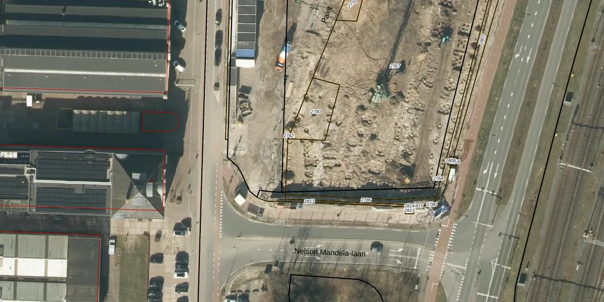 Het perceel waarop Palet 106 staat heeft een oppervlakte van 3690 m². Dit is een zeer groot perceel. De perceeloppervlakte wordt geregistreerd door het Kadaster. Gedetailleerde informatie over de maten van dit perceel kunt u vinden in het rapport Kadastrale kaart met maatvoering van Palet 106.