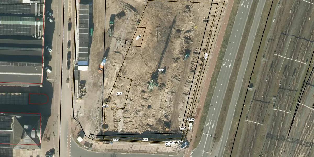 Het perceel waarop Palet 160 staat heeft een oppervlakte van 3690 m². Dit is een zeer groot perceel. De perceeloppervlakte wordt geregistreerd door het Kadaster. Gedetailleerde informatie over de maten van dit perceel kunt u vinden in het rapport Kadastrale kaart met maatvoering van Palet 160.