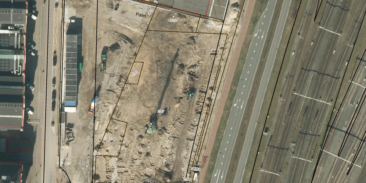 Het perceel waarop Palet 172 staat heeft een oppervlakte van 3690 m². Dit is een zeer groot perceel. De perceeloppervlakte wordt geregistreerd door het Kadaster. Gedetailleerde informatie over de maten van dit perceel kunt u vinden in het rapport Kadastrale kaart met maatvoering van Palet 172.