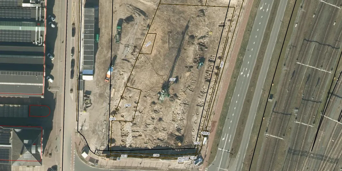Het perceel waarop Palet 184 staat heeft een oppervlakte van 3690 m². Dit is een zeer groot perceel. De perceeloppervlakte wordt geregistreerd door het Kadaster. Gedetailleerde informatie over de maten van dit perceel kunt u vinden in het rapport Kadastrale kaart met maatvoering van Palet 184.