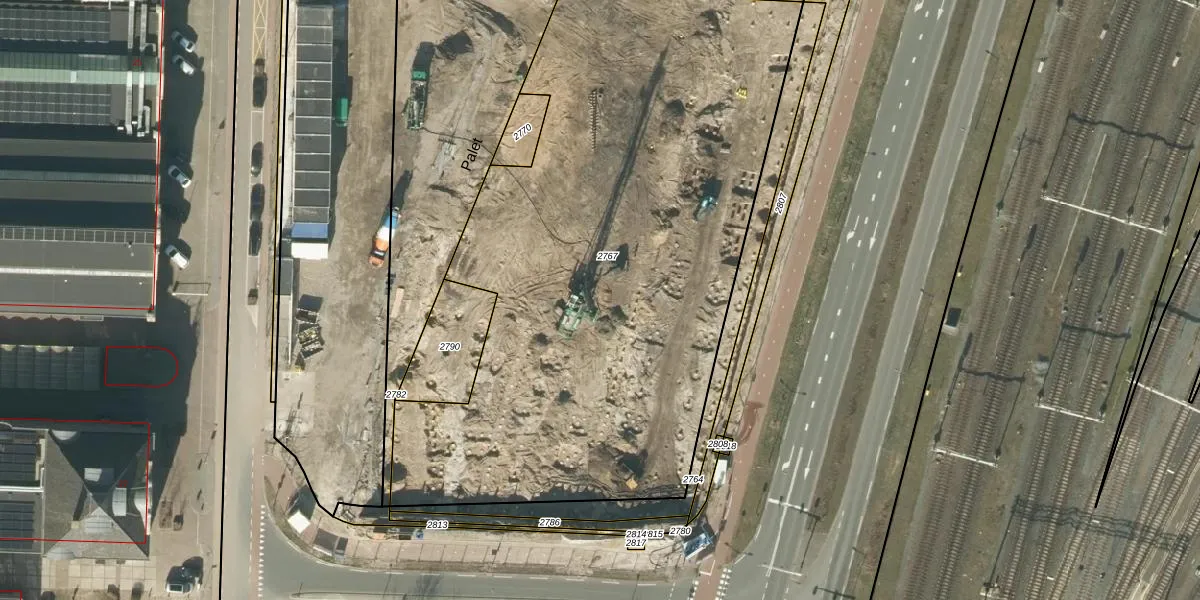 Het perceel waarop Palet 216 staat heeft een oppervlakte van 3690 m². Dit is een zeer groot perceel. De perceeloppervlakte wordt geregistreerd door het Kadaster. Gedetailleerde informatie over de maten van dit perceel kunt u vinden in het rapport Kadastrale kaart met maatvoering van Palet 216.