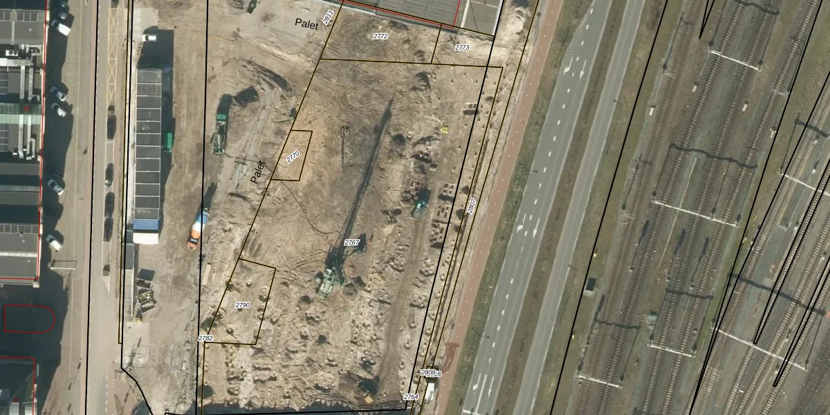 Het perceel waarop Palet 286 staat heeft een oppervlakte van 3690 m². Dit is een zeer groot perceel. De perceeloppervlakte wordt geregistreerd door het Kadaster. Gedetailleerde informatie over de maten van dit perceel kunt u vinden in het rapport Kadastrale kaart met maatvoering van Palet 286.