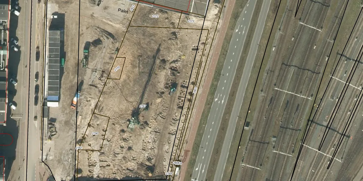 Het perceel waarop Palet 288 staat heeft een oppervlakte van 3690 m². Dit is een zeer groot perceel. De perceeloppervlakte wordt geregistreerd door het Kadaster. Gedetailleerde informatie over de maten van dit perceel kunt u vinden in het rapport Kadastrale kaart met maatvoering van Palet 288.
