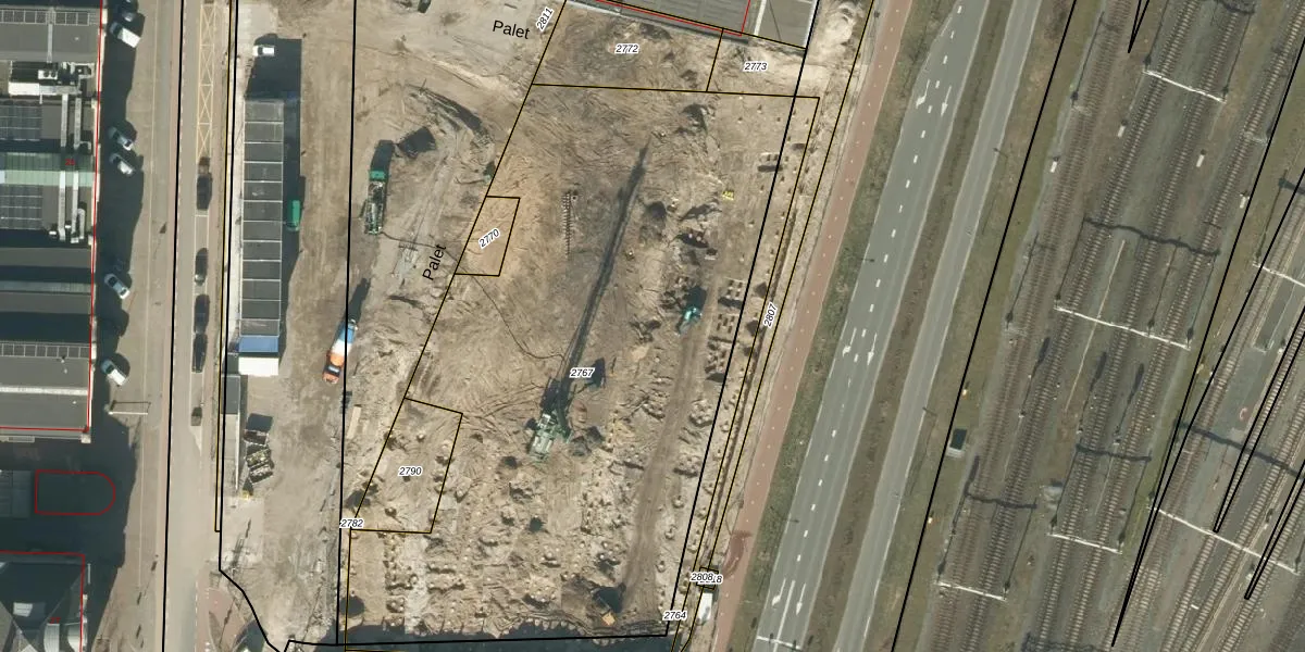 Het perceel waarop Palet 302 staat heeft een oppervlakte van 3690 m². Dit is een zeer groot perceel. De perceeloppervlakte wordt geregistreerd door het Kadaster. Gedetailleerde informatie over de maten van dit perceel kunt u vinden in het rapport Kadastrale kaart met maatvoering van Palet 302.