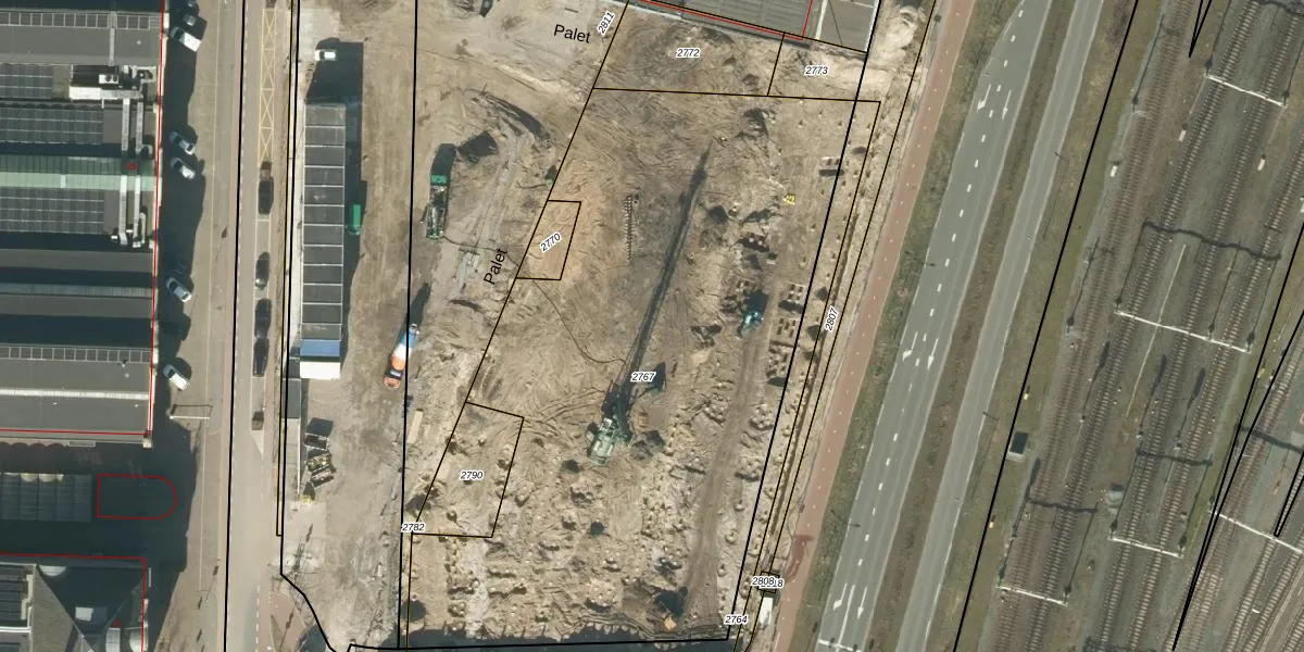 Het perceel waarop Palet 316 staat heeft een oppervlakte van 3690 m². Dit is een zeer groot perceel. De perceeloppervlakte wordt geregistreerd door het Kadaster. Gedetailleerde informatie over de maten van dit perceel kunt u vinden in het rapport Kadastrale kaart met maatvoering van Palet 316.