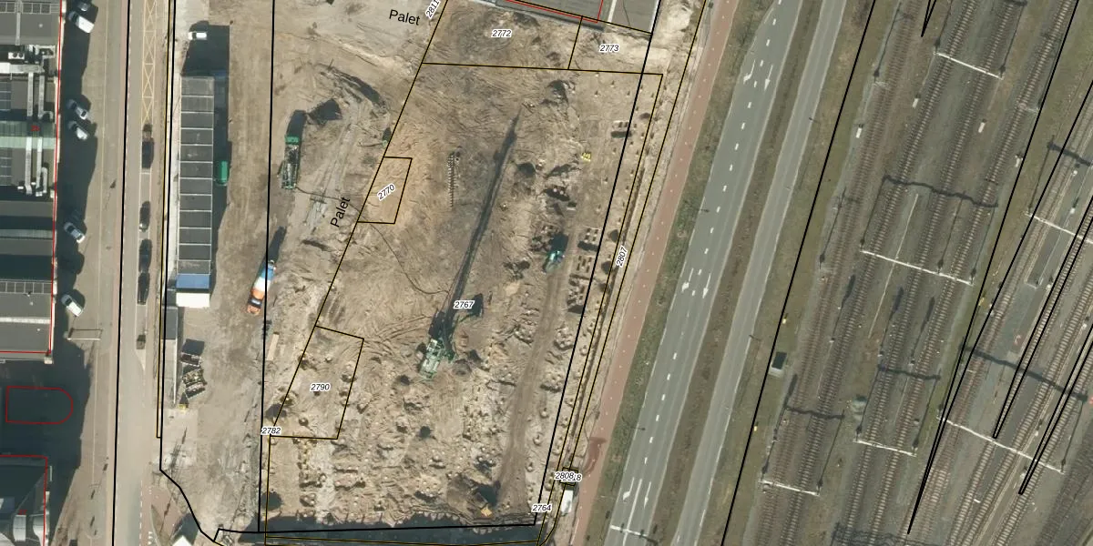 Het perceel waarop Palet 366 staat heeft een oppervlakte van 3690 m². Dit is een zeer groot perceel. De perceeloppervlakte wordt geregistreerd door het Kadaster. Gedetailleerde informatie over de maten van dit perceel kunt u vinden in het rapport Kadastrale kaart met maatvoering van Palet 366.