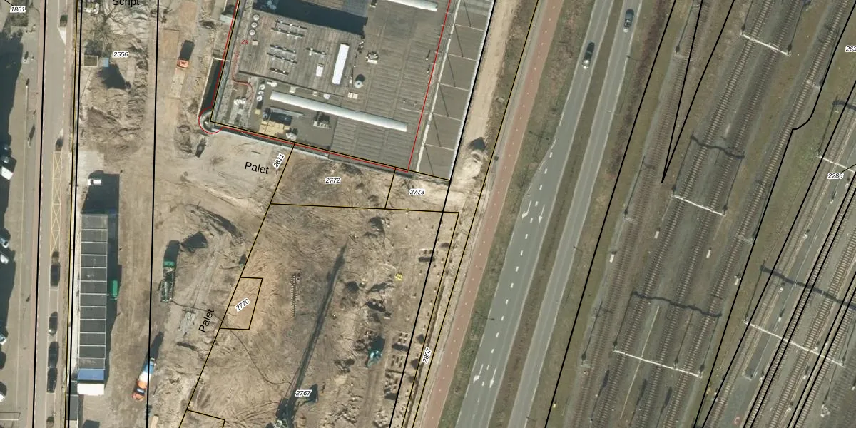 Het perceel waarop Palet 378 staat heeft een oppervlakte van 3690 m². Dit is een zeer groot perceel. De perceeloppervlakte wordt geregistreerd door het Kadaster. Gedetailleerde informatie over de maten van dit perceel kunt u vinden in het rapport Kadastrale kaart met maatvoering van Palet 378.
