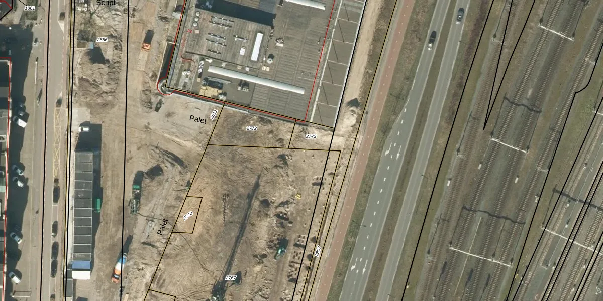 Het perceel waarop Palet 402 staat heeft een oppervlakte van 3690 m². Dit is een zeer groot perceel. De perceeloppervlakte wordt geregistreerd door het Kadaster. Gedetailleerde informatie over de maten van dit perceel kunt u vinden in het rapport Kadastrale kaart met maatvoering van Palet 402.