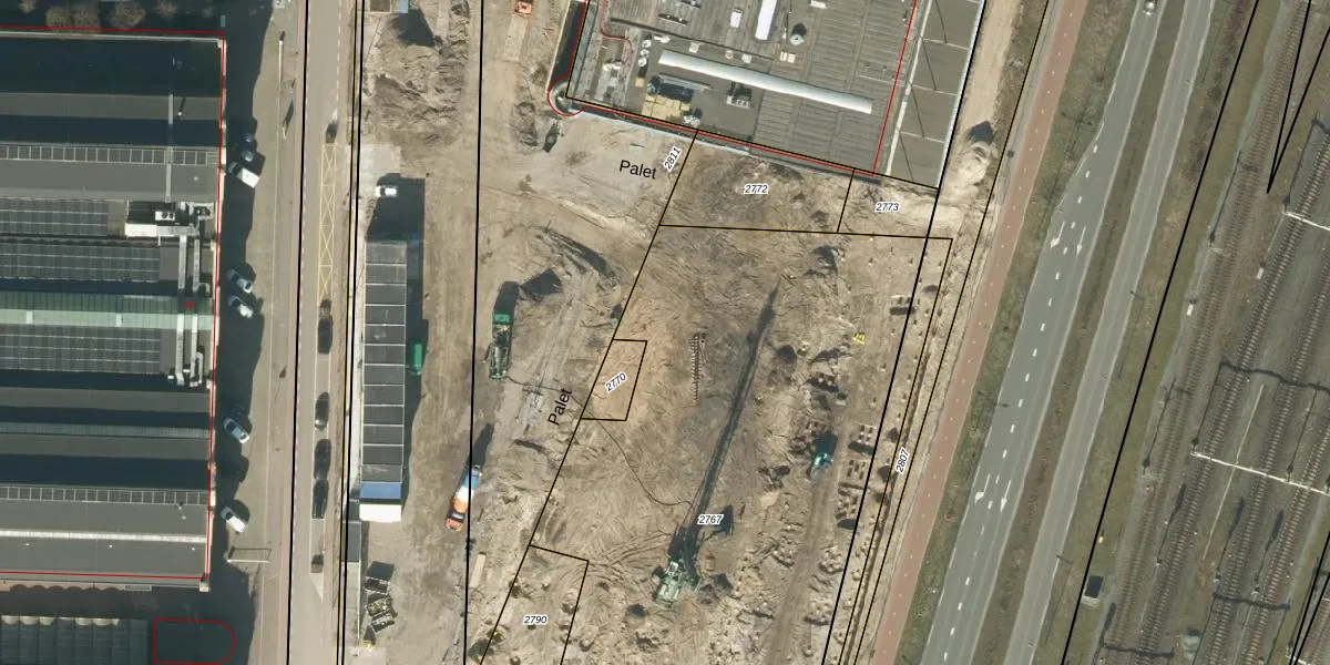 Het perceel waarop Palet 408 staat heeft een oppervlakte van 3690 m². Dit is een zeer groot perceel. De perceeloppervlakte wordt geregistreerd door het Kadaster. Gedetailleerde informatie over de maten van dit perceel kunt u vinden in het rapport Kadastrale kaart met maatvoering van Palet 408.