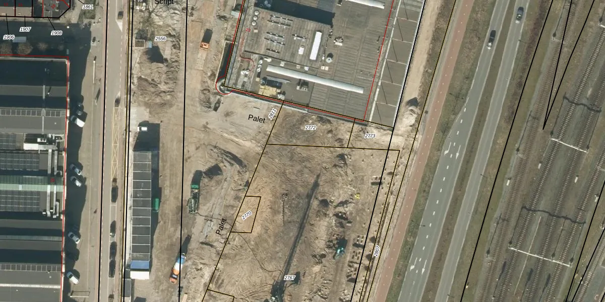 Het perceel waarop Palet 420 staat heeft een oppervlakte van 3690 m². Dit is een zeer groot perceel. De perceeloppervlakte wordt geregistreerd door het Kadaster. Gedetailleerde informatie over de maten van dit perceel kunt u vinden in het rapport Kadastrale kaart met maatvoering van Palet 420.