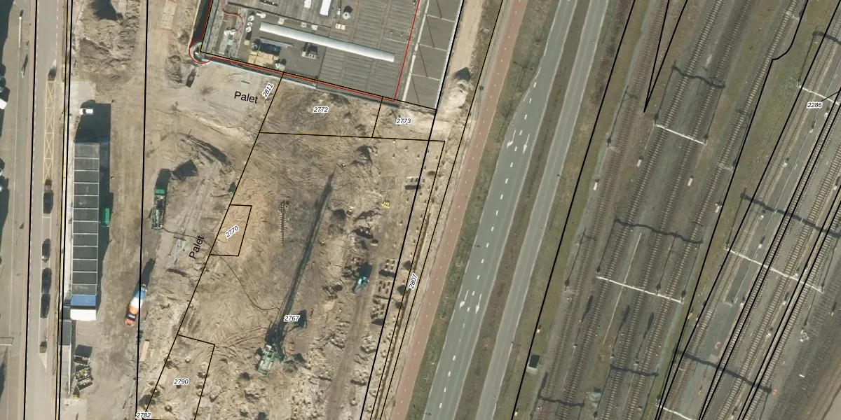Het perceel waarop Palet 436 staat heeft een oppervlakte van 376 m². Dit is een groot perceel. De perceeloppervlakte wordt geregistreerd door het Kadaster. Gedetailleerde informatie over de maten van dit perceel kunt u vinden in het rapport Kadastrale kaart met maatvoering van Palet 436.