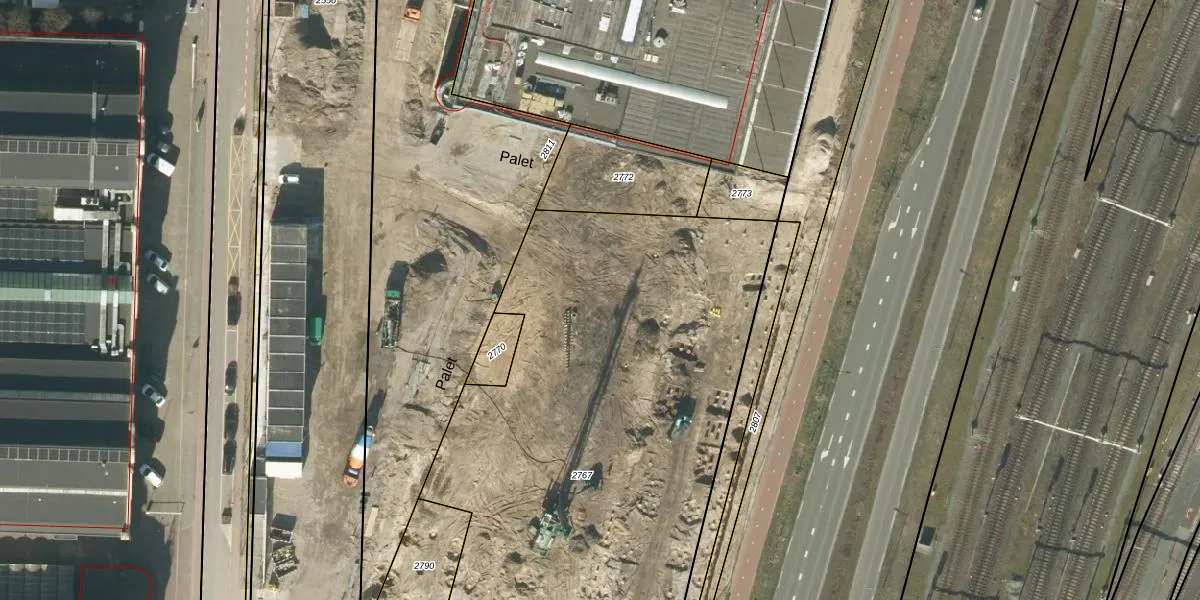 Het perceel waarop Palet 502 staat heeft een oppervlakte van 3690 m². Dit is een zeer groot perceel. De perceeloppervlakte wordt geregistreerd door het Kadaster. Gedetailleerde informatie over de maten van dit perceel kunt u vinden in het rapport Kadastrale kaart met maatvoering van Palet 502.