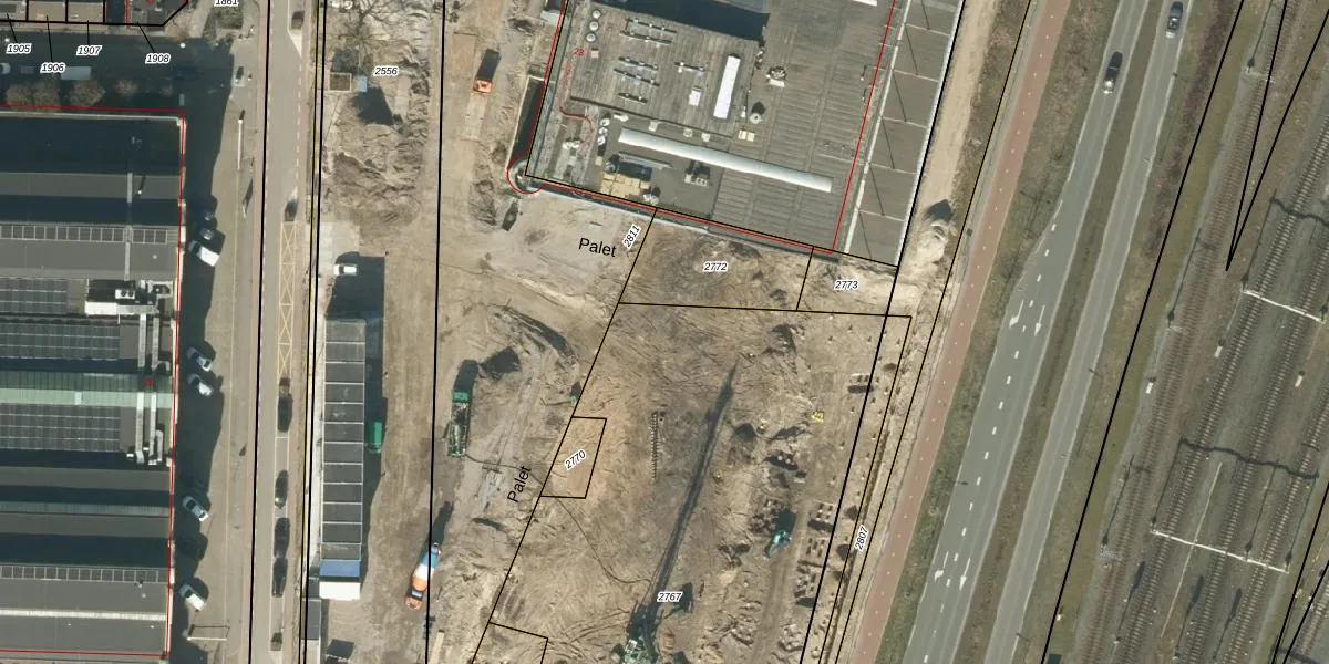 Het perceel waarop Palet 516 staat heeft een oppervlakte van 3690 m². Dit is een zeer groot perceel. De perceeloppervlakte wordt geregistreerd door het Kadaster. Gedetailleerde informatie over de maten van dit perceel kunt u vinden in het rapport Kadastrale kaart met maatvoering van Palet 516.