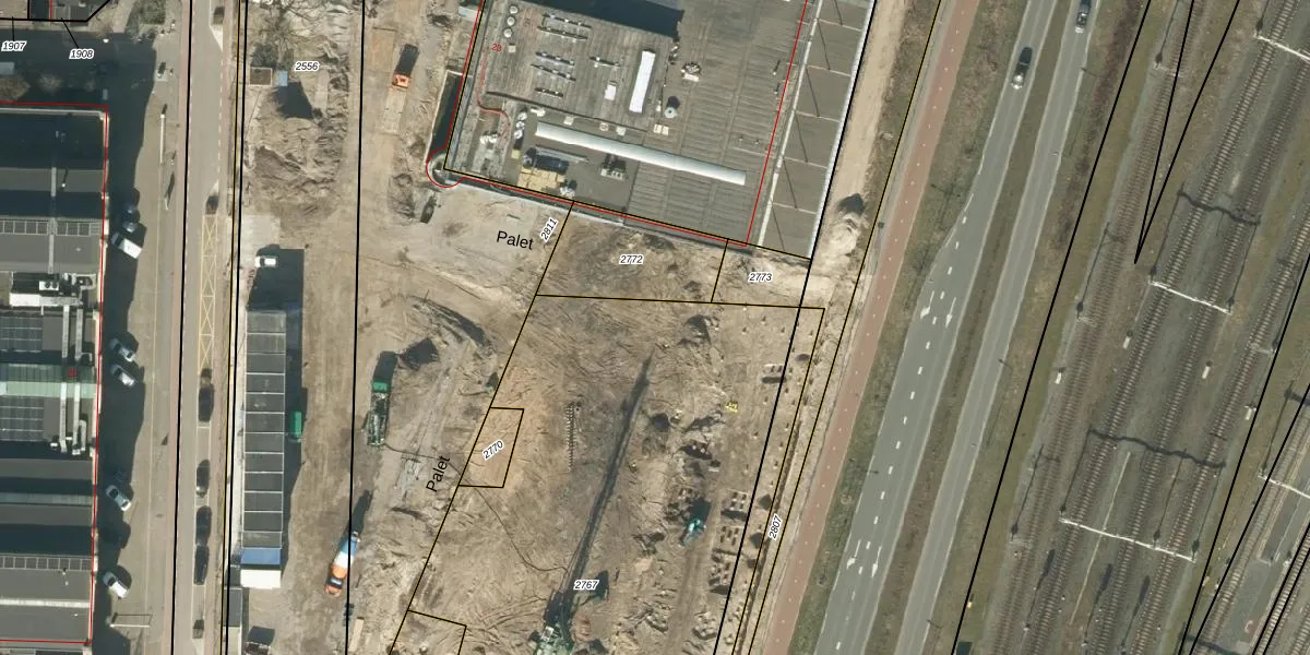 Het perceel waarop Palet 524 staat heeft een oppervlakte van 3690 m². Dit is een zeer groot perceel. De perceeloppervlakte wordt geregistreerd door het Kadaster. Gedetailleerde informatie over de maten van dit perceel kunt u vinden in het rapport Kadastrale kaart met maatvoering van Palet 524.