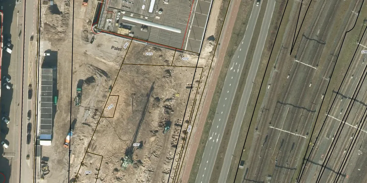 Het perceel waarop Palet 538 staat heeft een oppervlakte van 3690 m². Dit is een zeer groot perceel. De perceeloppervlakte wordt geregistreerd door het Kadaster. Gedetailleerde informatie over de maten van dit perceel kunt u vinden in het rapport Kadastrale kaart met maatvoering van Palet 538.