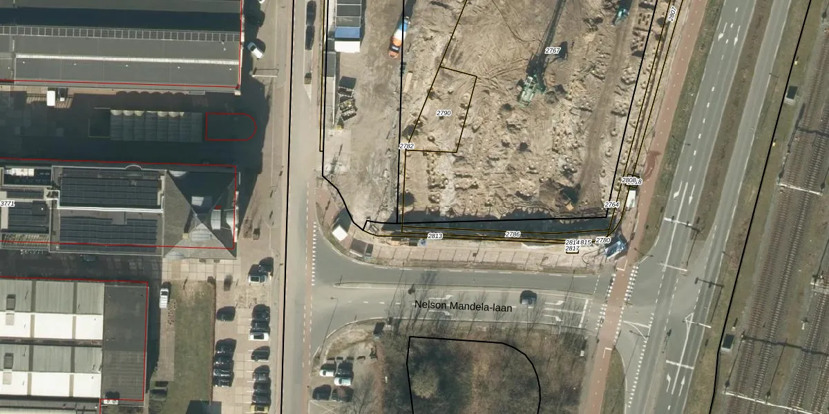 Het perceel waarop Palet 68 staat heeft een oppervlakte van 3690 m². Dit is een zeer groot perceel. De perceeloppervlakte wordt geregistreerd door het Kadaster. Gedetailleerde informatie over de maten van dit perceel kunt u vinden in het rapport Kadastrale kaart met maatvoering van Palet 68.