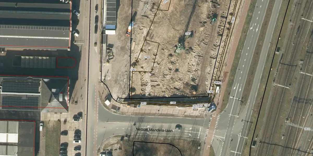 Het perceel waarop Palet 76 staat heeft een oppervlakte van 3690 m². Dit is een zeer groot perceel. De perceeloppervlakte wordt geregistreerd door het Kadaster. Gedetailleerde informatie over de maten van dit perceel kunt u vinden in het rapport Kadastrale kaart met maatvoering van Palet 76.