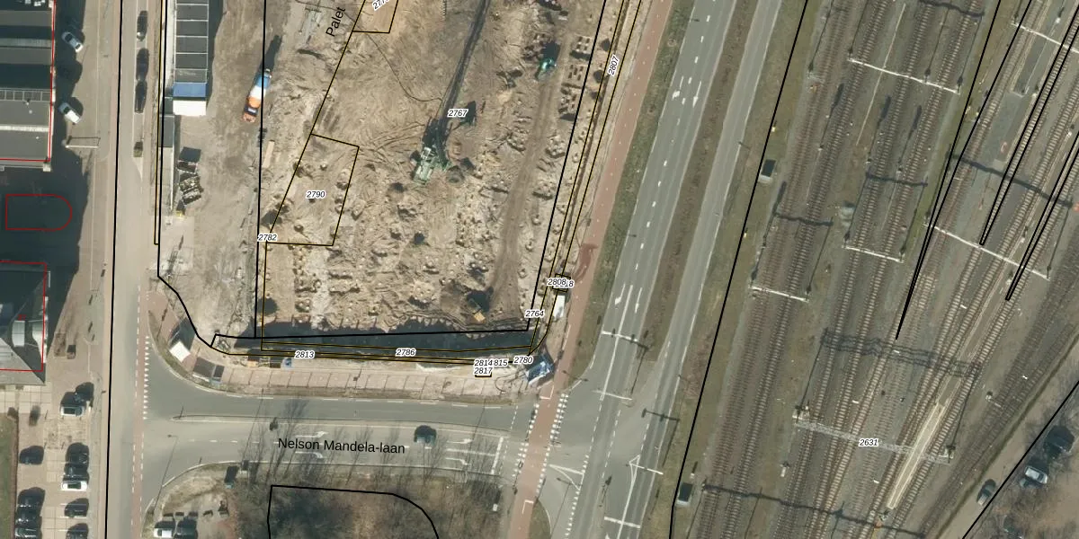 Het perceel waarop Palet 86 staat heeft een oppervlakte van 3690 m². Dit is een zeer groot perceel. De perceeloppervlakte wordt geregistreerd door het Kadaster. Gedetailleerde informatie over de maten van dit perceel kunt u vinden in het rapport Kadastrale kaart met maatvoering van Palet 86.