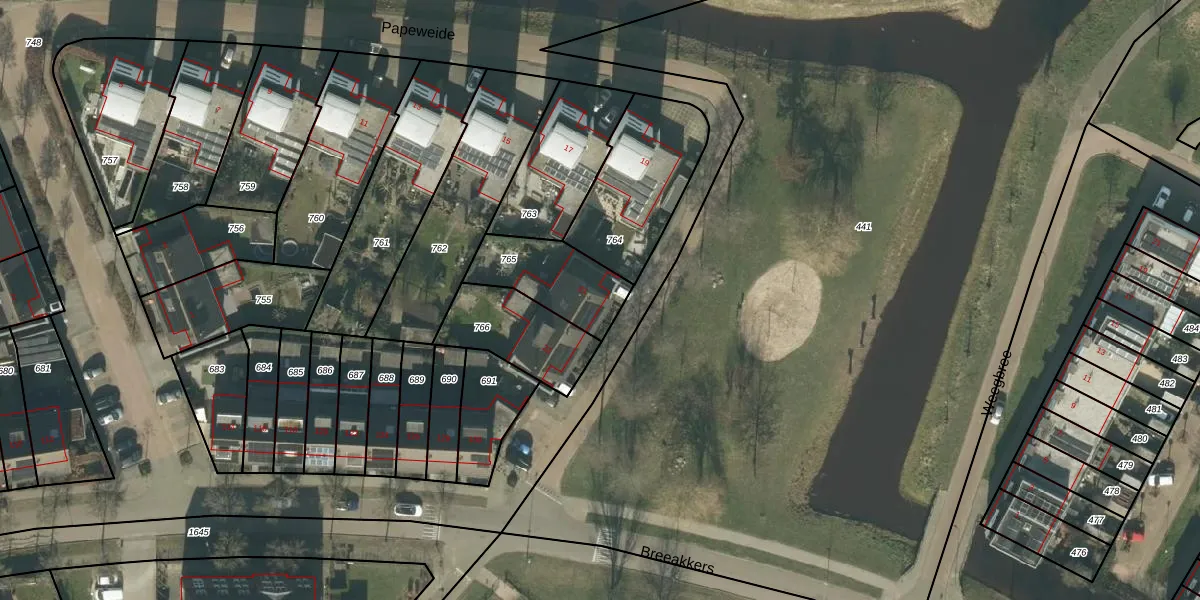 Het perceel waarop Papeweide 21 staat heeft een oppervlakte van 263 m². Dit is een middelgroot perceel. De perceeloppervlakte wordt geregistreerd door het Kadaster. Gedetailleerde informatie over de maten van dit perceel kunt u vinden in het rapport Kadastrale kaart met maatvoering van Papeweide 21.
