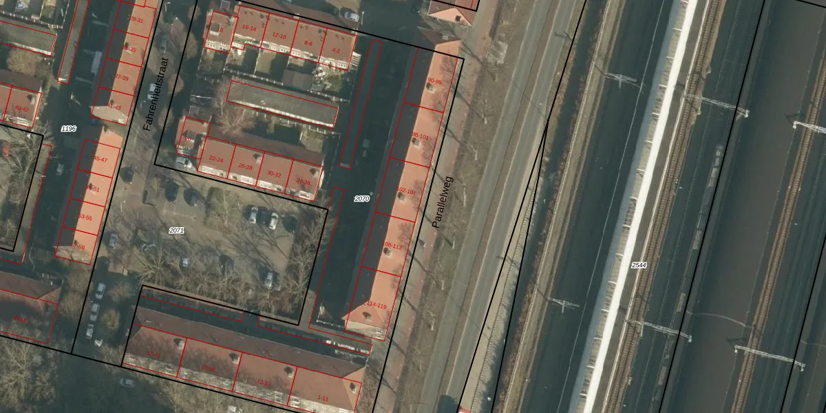 Parallelweg 103 is gelegen op kadastraal perceel HTG00F2070. Deze kadastrale aanduiding is uniek en wordt gebruikt door het Kadaster om eigendomsrechten en andere zakelijke rechten vast te leggen. Het perceel maakt onderdeel uit van de kadastrale gemeente 's-Hertogenbosch.