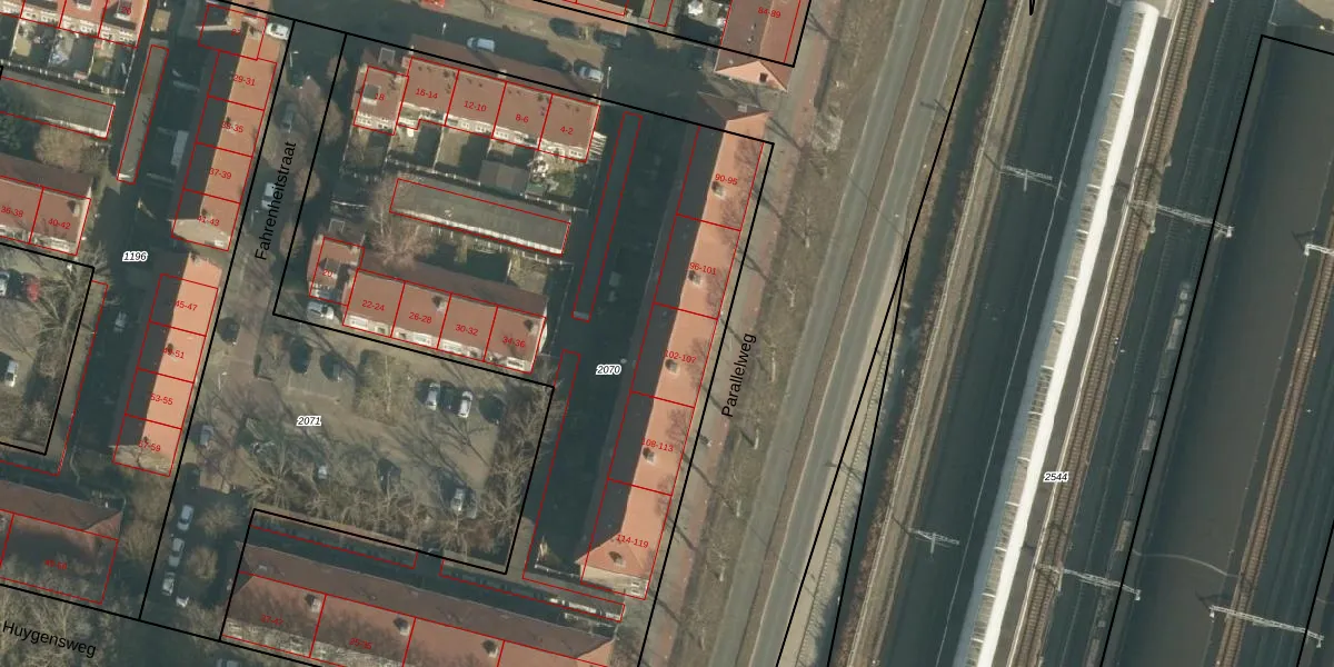 Parallelweg 106 is gelegen op kadastraal perceel HTG00F2070. Deze kadastrale aanduiding is uniek en wordt gebruikt door het Kadaster om eigendomsrechten en andere zakelijke rechten vast te leggen. Het perceel maakt onderdeel uit van de kadastrale gemeente 's-Hertogenbosch.