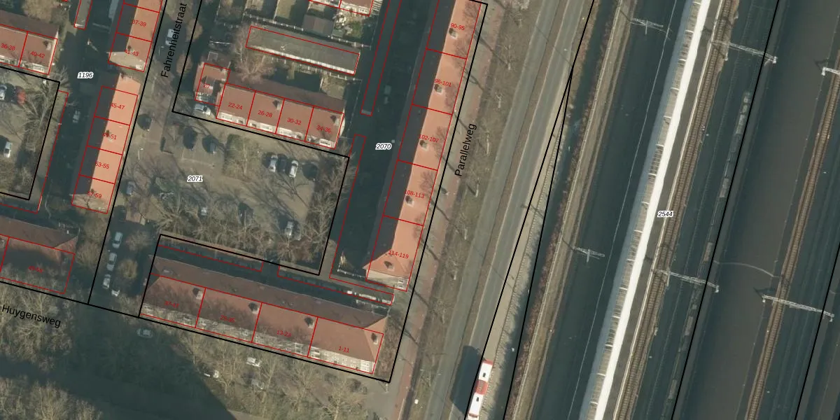 Parallelweg 109 is gelegen op kadastraal perceel HTG00F2070. Deze kadastrale aanduiding is uniek en wordt gebruikt door het Kadaster om eigendomsrechten en andere zakelijke rechten vast te leggen. Het perceel maakt onderdeel uit van de kadastrale gemeente 's-Hertogenbosch.