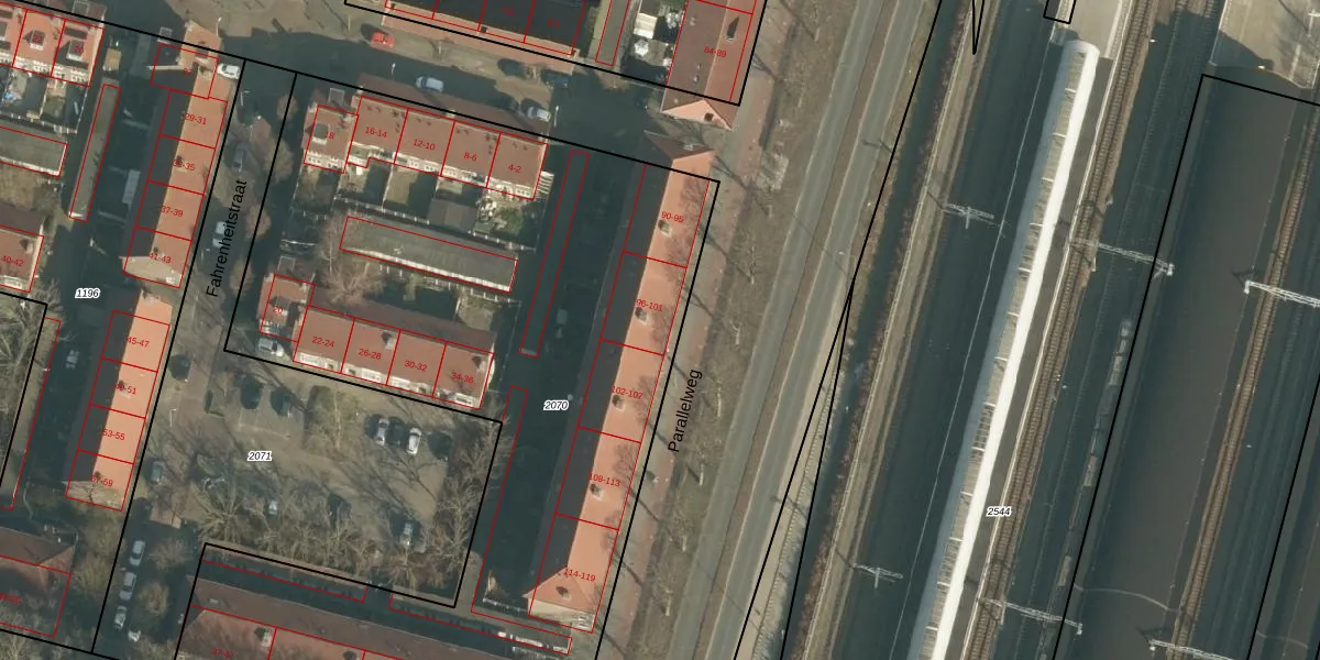 Parallelweg 97 is gelegen op kadastraal perceel HTG00F2070. Deze kadastrale aanduiding is uniek en wordt gebruikt door het Kadaster om eigendomsrechten en andere zakelijke rechten vast te leggen. Het perceel maakt onderdeel uit van de kadastrale gemeente 's-Hertogenbosch.