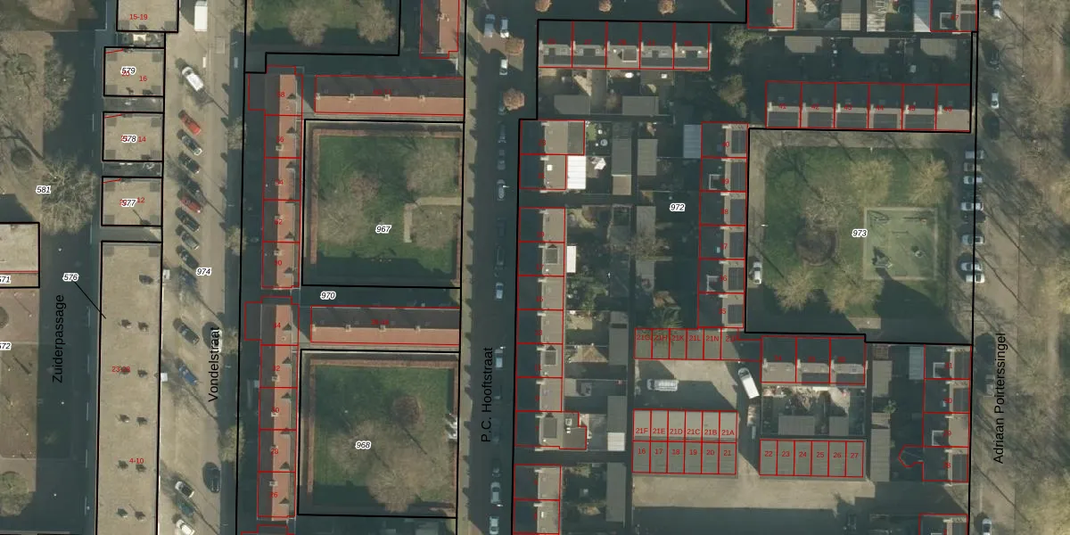 Het perceel waarop P.C. Hooftstraat 17 staat heeft een oppervlakte van 1,6 ha. Dit is een zeer groot perceel. De perceeloppervlakte wordt geregistreerd door het Kadaster. Gedetailleerde informatie over de maten van dit perceel kunt u vinden in het rapport Kadastrale kaart met maatvoering van P.C. Hooftstraat 17.