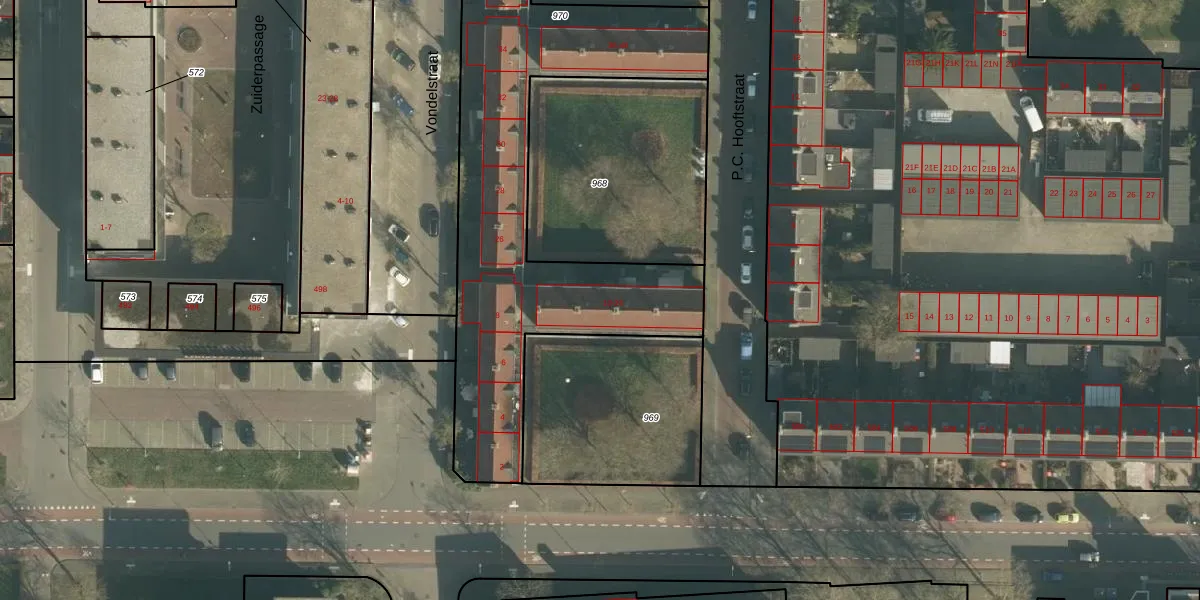 Het perceel waarop P.C. Hooftstraat 20 staat heeft een oppervlakte van 3235 m². Dit is een zeer groot perceel. De perceeloppervlakte wordt geregistreerd door het Kadaster. Gedetailleerde informatie over de maten van dit perceel kunt u vinden in het rapport Kadastrale kaart met maatvoering van P.C. Hooftstraat 20.