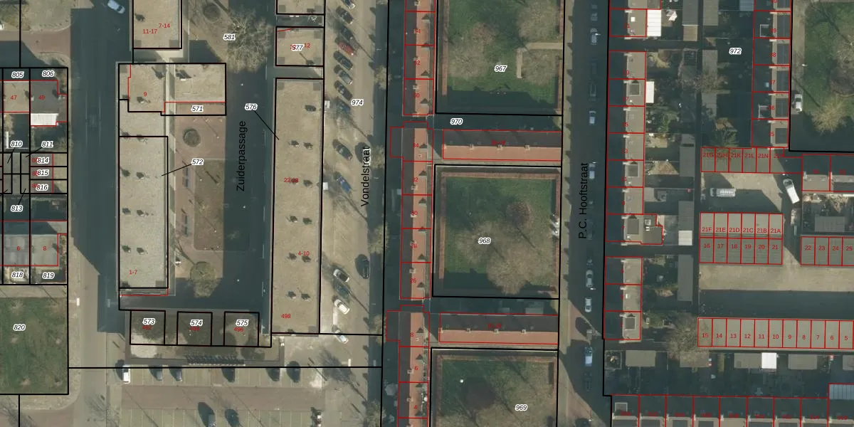 Het perceel waarop P.C. Hooftstraat 30 staat heeft een oppervlakte van 3235 m². Dit is een zeer groot perceel. De perceeloppervlakte wordt geregistreerd door het Kadaster. Gedetailleerde informatie over de maten van dit perceel kunt u vinden in het rapport Kadastrale kaart met maatvoering van P.C. Hooftstraat 30.