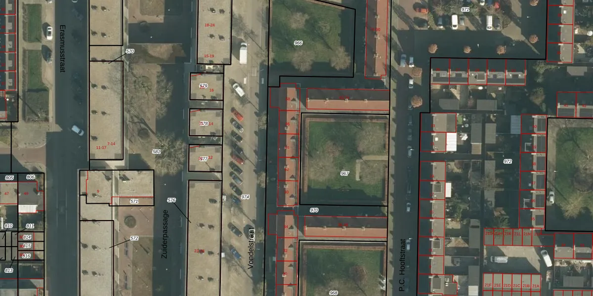 Het perceel waarop P.C. Hooftstraat 54 staat heeft een oppervlakte van 3235 m². Dit is een zeer groot perceel. De perceeloppervlakte wordt geregistreerd door het Kadaster. Gedetailleerde informatie over de maten van dit perceel kunt u vinden in het rapport Kadastrale kaart met maatvoering van P.C. Hooftstraat 54.