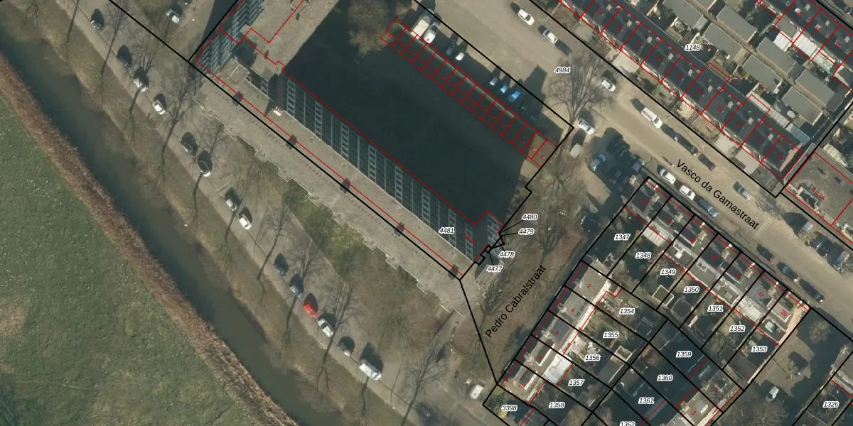 Het perceel waarop Pedro Cabralstraat 55 staat heeft een oppervlakte van 3641 m². Dit is een zeer groot perceel. De perceeloppervlakte wordt geregistreerd door het Kadaster. Gedetailleerde informatie over de maten van dit perceel kunt u vinden in het rapport Kadastrale kaart met maatvoering van Pedro Cabralstraat 55.