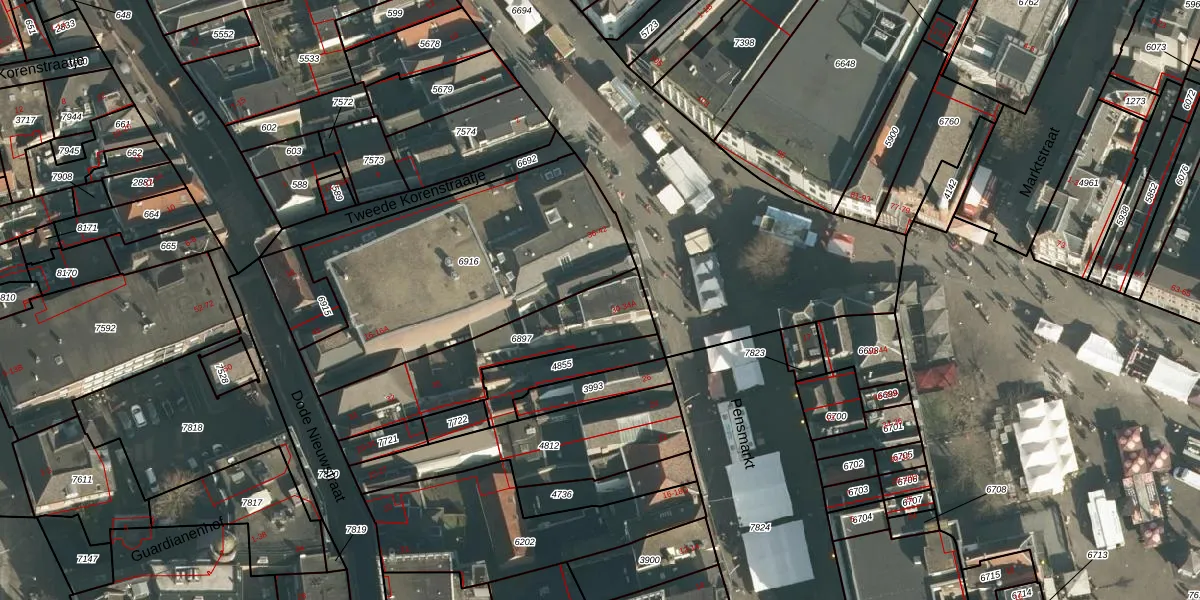 Het perceel waarop Pensmarkt 34 staat heeft een oppervlakte van 465 m². Dit is een groot perceel. De perceeloppervlakte wordt geregistreerd door het Kadaster. Gedetailleerde informatie over de maten van dit perceel kunt u vinden in het rapport Kadastrale kaart met maatvoering van Pensmarkt 34.