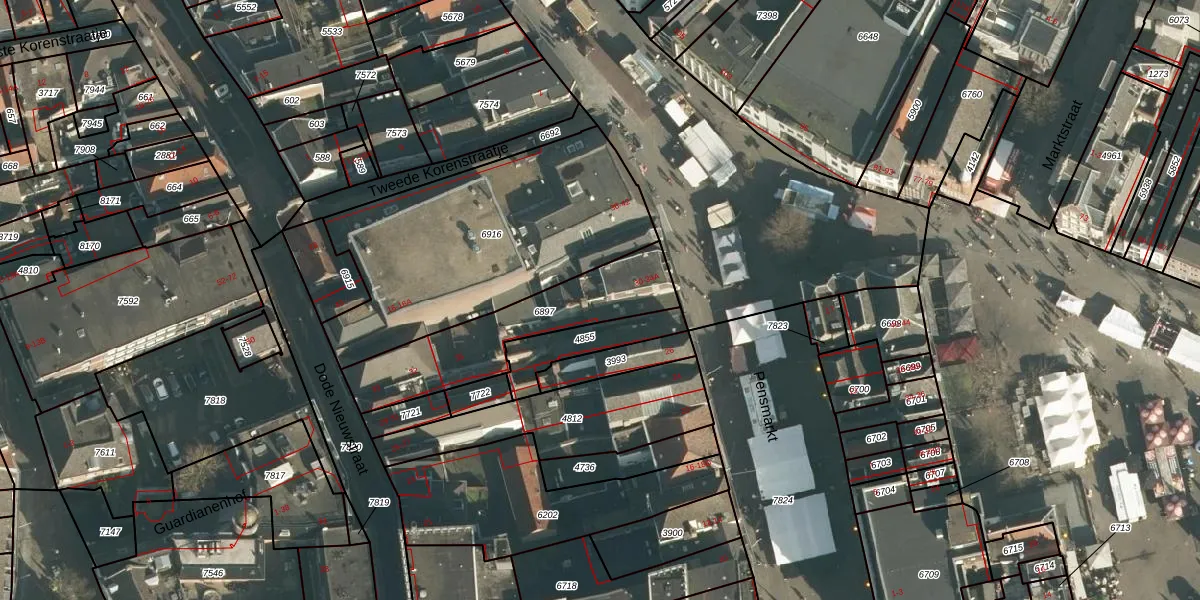 Het perceel waarop Pensmarkt 34-A staat heeft een oppervlakte van 465 m². Dit is een groot perceel. De perceeloppervlakte wordt geregistreerd door het Kadaster. Gedetailleerde informatie over de maten van dit perceel kunt u vinden in het rapport Kadastrale kaart met maatvoering van Pensmarkt 34-A.
