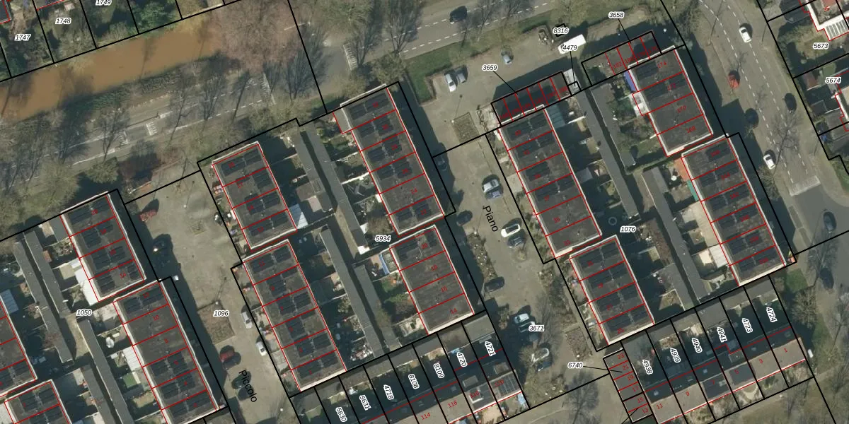 Het perceel waarop Piano 22 staat heeft een oppervlakte van 3004 m². Dit is een zeer groot perceel. De perceeloppervlakte wordt geregistreerd door het Kadaster. Gedetailleerde informatie over de maten van dit perceel kunt u vinden in het rapport Kadastrale kaart met maatvoering van Piano 22.