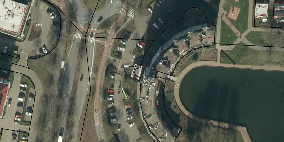 Het perceel waarop Pisastraat 37 staat heeft een oppervlakte van 2178 m². Dit is een zeer groot perceel. De perceeloppervlakte wordt geregistreerd door het Kadaster. Gedetailleerde informatie over de maten van dit perceel kunt u vinden in het rapport Kadastrale kaart met maatvoering van Pisastraat 37.