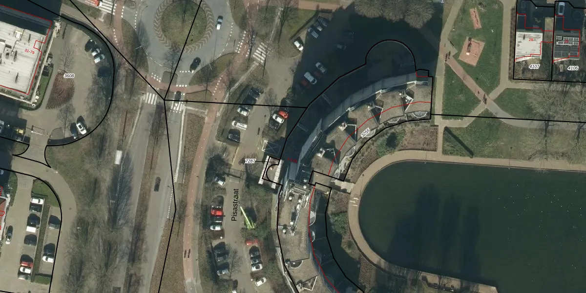 Het perceel waarop Pisastraat 43 staat heeft een oppervlakte van 2178 m². Dit is een zeer groot perceel. De perceeloppervlakte wordt geregistreerd door het Kadaster. Gedetailleerde informatie over de maten van dit perceel kunt u vinden in het rapport Kadastrale kaart met maatvoering van Pisastraat 43.