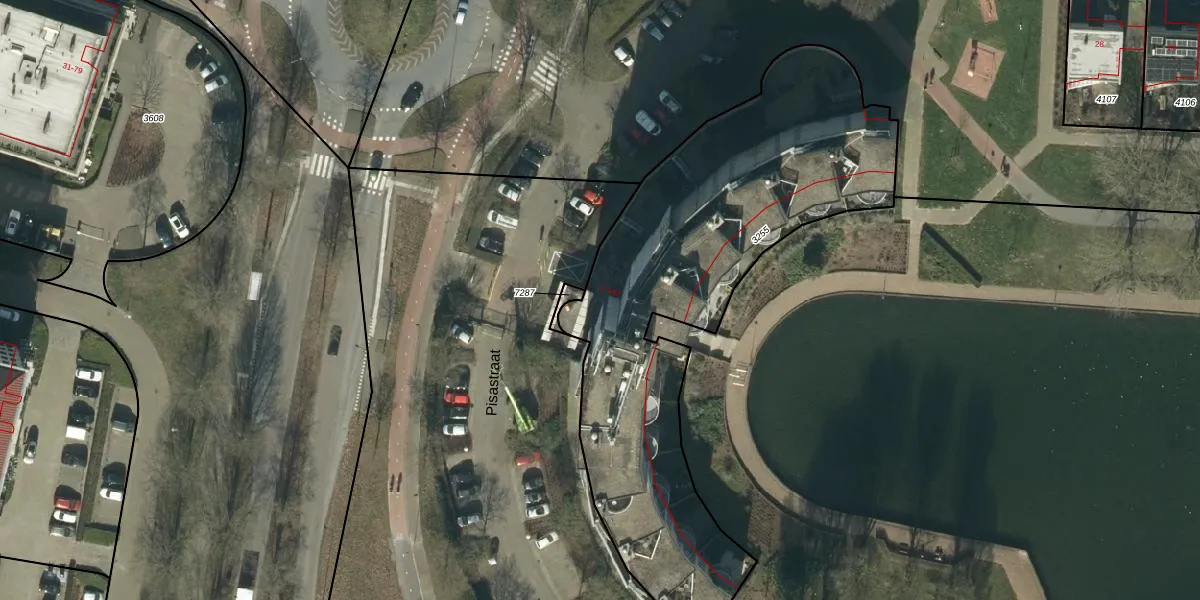 Het perceel waarop Pisastraat 53 staat heeft een oppervlakte van 2178 m². Dit is een zeer groot perceel. De perceeloppervlakte wordt geregistreerd door het Kadaster. Gedetailleerde informatie over de maten van dit perceel kunt u vinden in het rapport Kadastrale kaart met maatvoering van Pisastraat 53.