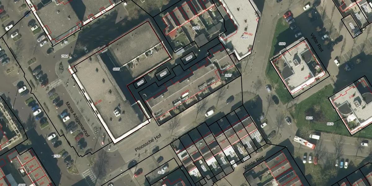 Het perceel waarop Ploossche Hof 124 staat heeft een oppervlakte van 1021 m². Dit is een zeer groot perceel. De perceeloppervlakte wordt geregistreerd door het Kadaster. Gedetailleerde informatie over de maten van dit perceel kunt u vinden in het rapport Kadastrale kaart met maatvoering van Ploossche Hof 124.