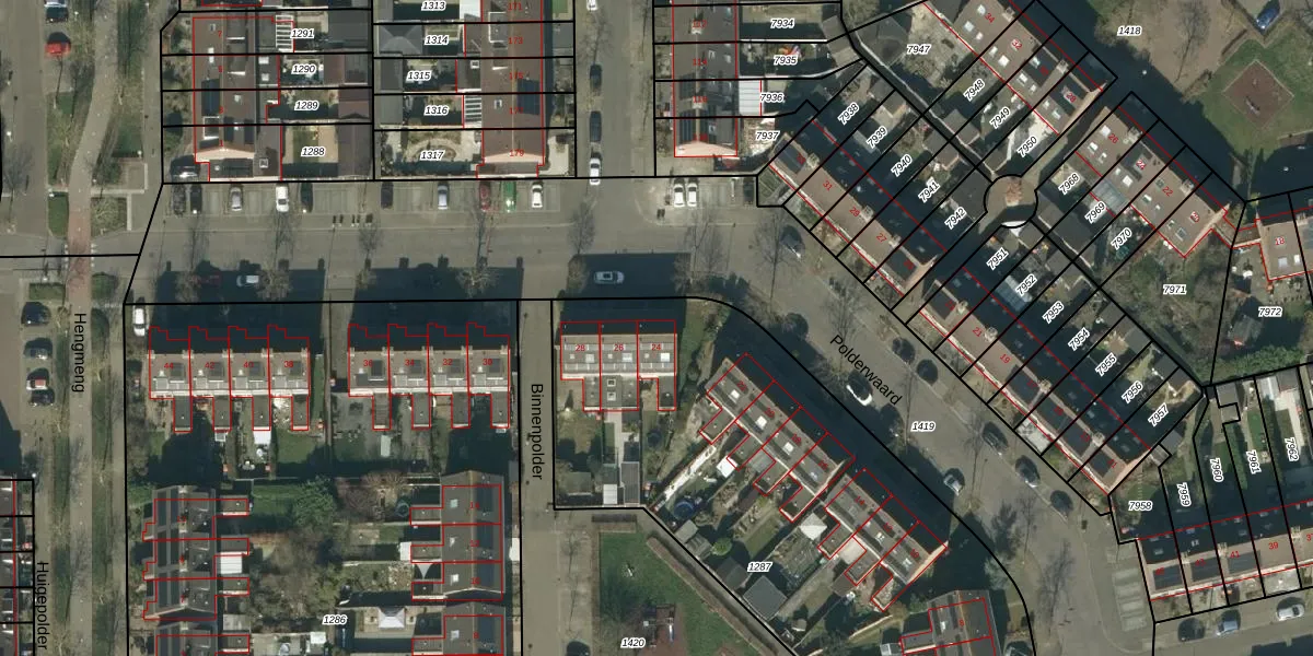 Het perceel waarop Polderwaard 24 staat heeft een oppervlakte van 2640 m². Dit is een zeer groot perceel. De perceeloppervlakte wordt geregistreerd door het Kadaster. Gedetailleerde informatie over de maten van dit perceel kunt u vinden in het rapport Kadastrale kaart met maatvoering van Polderwaard 24.
